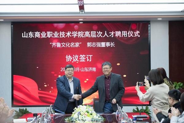 3月18日,山東商院舉行高層次人才聘用儀式。學校黨委書記張志東與學校引進的“齊魯文化名家”世紀開元智印互聯科技集團股份有限公司(以下簡稱“世紀開元”)董事長郭志強簽署《高層次人才聘用協議》。學校黨委副書記侯功海主持儀式。世紀開元副總裁胡永慶,學校副院長徐紅、副院長韓西清、副院長張宗國、相關部室負責人及工商管理學院部分教師參加儀式。