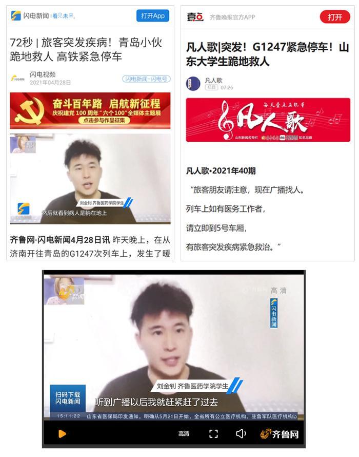 4月27日20:01分,在濟南站開往青島北站的G1247次列車上,一旅客突發暈厥、渾身抽搐。緊急時刻,齊魯醫藥學院學生劉金釗挺身而出、果斷出手,與列車員、熱心旅客一同展開施救。“當時第一反應不是害怕,而是想幫著旅客渡過危險期,把我在學校學到的專業知識和急救技能全部用上,盡最大的努力為病人減輕痛苦,爭取延續生命的機會。” 談到此次救人行為,劉金釗這樣說。他的事跡,先后被山東電視臺新聞頻道、齊魯晚報、齊魯壹點、海報新聞等10多家媒體關注報道。