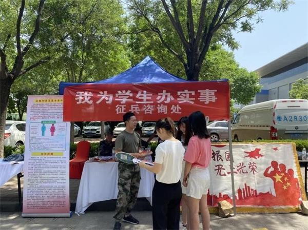 2021年大學(xué)生征兵工作首次實(shí)行“一年兩征”。為做好征兵工作,學(xué)生工作部(團(tuán)委)專門成立征兵工作室,安排專人值班,現(xiàn)場解答同學(xué)們的疑問,積極引導(dǎo)大學(xué)生關(guān)注國防、熱愛國防、支持國防、投身國防。