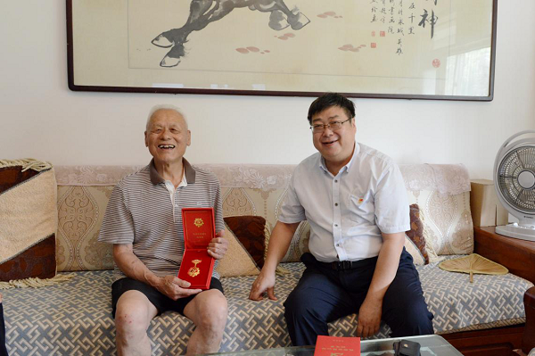 呂傳義今年89歲,黨齡69年,曾參加抗美援朝戰爭,多次榮立二等功和三等功。在慰問過程中,張志東詳細詢問老人的身體健康狀況和生活情況,感謝老同志對學校發展所作貢獻,并祝福老人健康長壽。