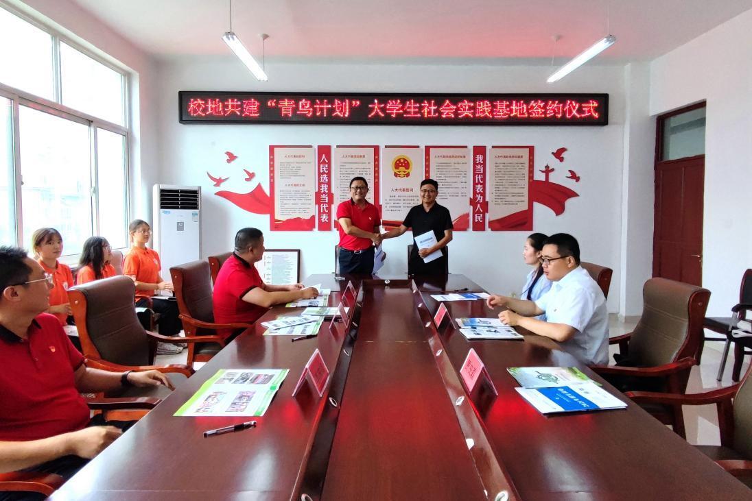 12日,山東商院智能制造與服務學院黨總支副書記程昆與濟寧梁山縣水泊街道杏花村社區黨委書記賈慶磊代表校地雙方簽署共建“青鳥計劃”大學生社會實踐基地協議。