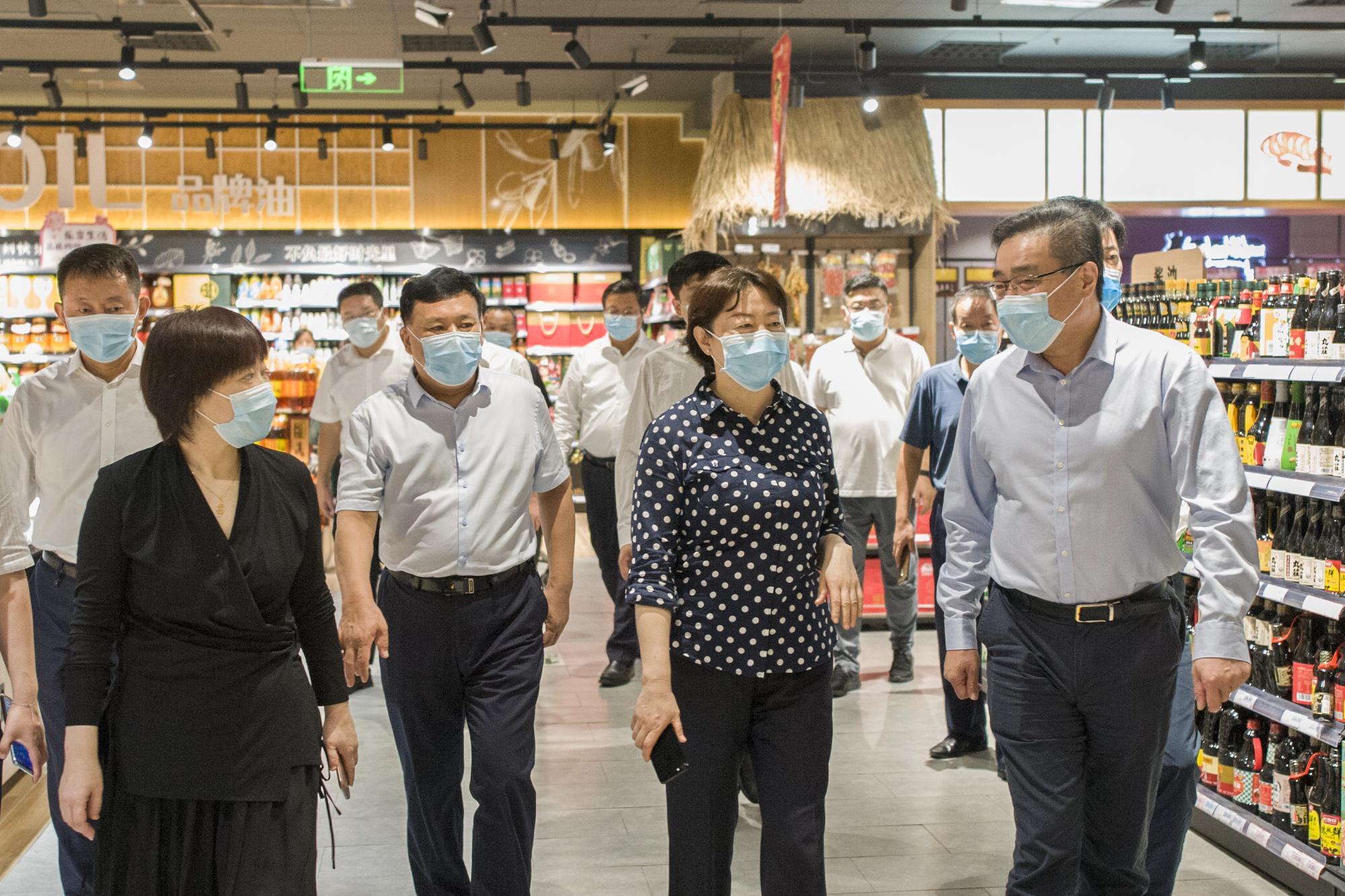 9月1日上午,濟南市委常委、組織部部長陳陽到銀座華信店督導迎接國家食品安全示范城市復查工作進展情況。歷城區委書記張軍,銀座集團總經理康翔陪同。