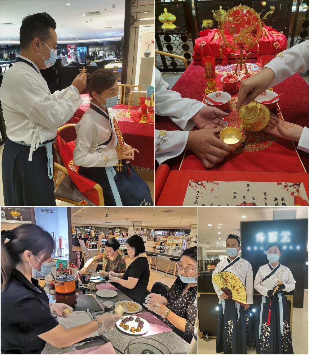 銀座商城名品商場從金九銀十“婚慶季”切入,聯合珠寶品牌開展傳統文化宣傳活動,商場員工身著漢服,配以高定珠寶,古韻與新潮碰撞,渲染節日氛圍的同時盡顯國韻風華,形成了一道亮麗的風景線;家具商場推出月餅DIY沙龍活動,專業烘焙師傅現場教學,廣式月餅、酥皮月餅、鮮肉月餅、冰皮月餅......各類月餅應有盡有,受到顧客一致好評。銀座八一店、七里山店、華信店等也結合自身特色推出一系列促銷活動,點燃了廣大顧客的消費熱情。