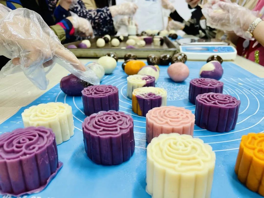 活動現(xiàn)場,面點師傅先給大家分享關(guān)于月餅制作的知識和技巧,并現(xiàn)場演示月餅的制作方法。在老師的指導(dǎo)下,打平、搓圓、壓模、出模,每個人都化身月餅師傅,在一片歡聲笑語中,一盤盤精致的月餅呈現(xiàn)在大家眼前。