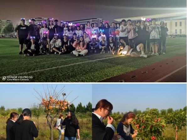 9月30日晚,伴隨著“熱力廣場舞”音樂響起,活動拉開序幕。歡快的音樂、輕松的氛圍吸引留校學(xué)生陸續(xù)加入到廣場舞隊伍,他們以飽滿的熱情、動感的舞姿展現(xiàn)著當(dāng)代大學(xué)生的青春活力;“熒光夜跑”活動點燃了同學(xué)們的參與熱情,夜幕中,矯健的身影穿梭在田徑賽道上,涌動的人海形成一道道亮麗的風(fēng)景線,把整個校園點綴成閃爍的歡樂海洋。掛滿枝頭的海棠、山楂、桃子進(jìn)入采摘期,10月1日,同學(xué)們在老師帶領(lǐng)下采摘果實,品嘗豐收的喜悅;“抱團打天下”游戲,大家齊心協(xié)力、相互鼓勵、認(rèn)真參與,現(xiàn)場氛圍歡樂愉快。