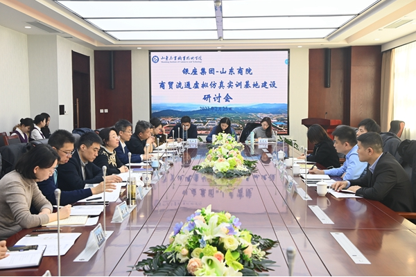 2月25日,銀座集團-山東商院商貿流通虛擬仿真實訓基地建設研討會召開。山東商院黨委副書記、院長王鑫、銀座集團總經理康翔共同主持會議,學院黨委副書記宋超參會。