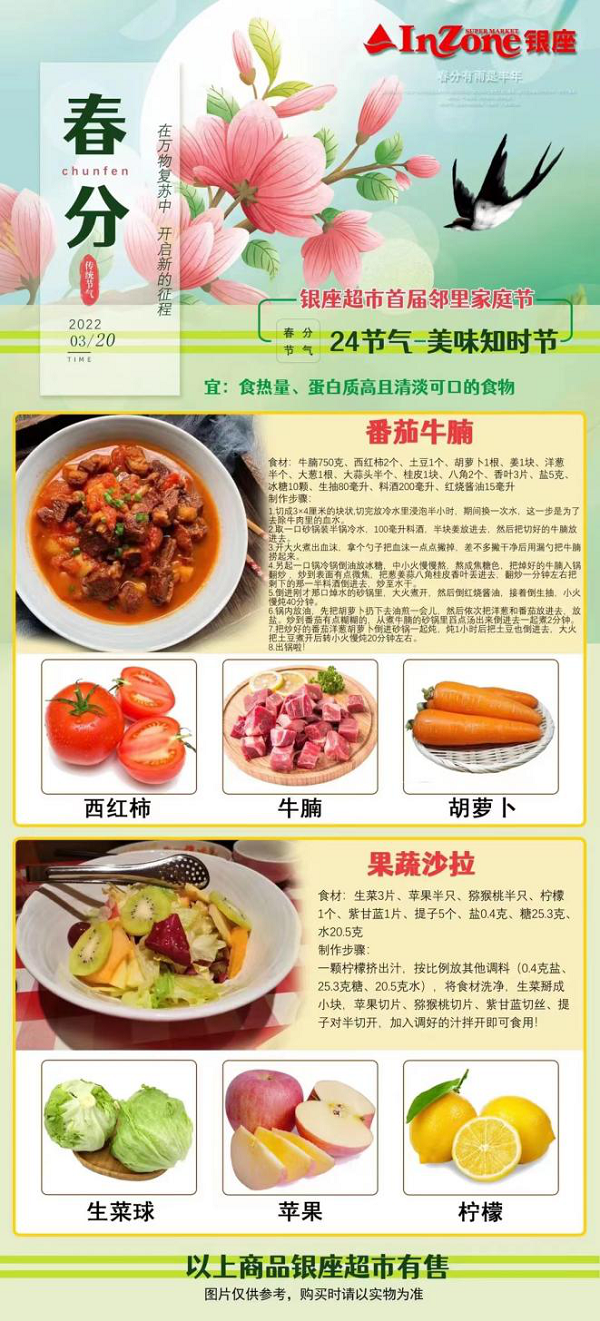 想想看,當(dāng)你在清明、谷雨、小滿等節(jié)氣漫步在家門口的銀座超市,會驚喜地發(fā)現(xiàn)堆得高高的節(jié)氣食材商品,可以比照養(yǎng)生食譜一站購齊所需的時令食材——香椿炒蛋、薺菜水餃、油燜春筍、蓮藕排骨……將剛從田間地頭新鮮采摘的時令食材擺到自家的餐桌上,美味又養(yǎng)生,是不是頓覺幸福感爆棚?