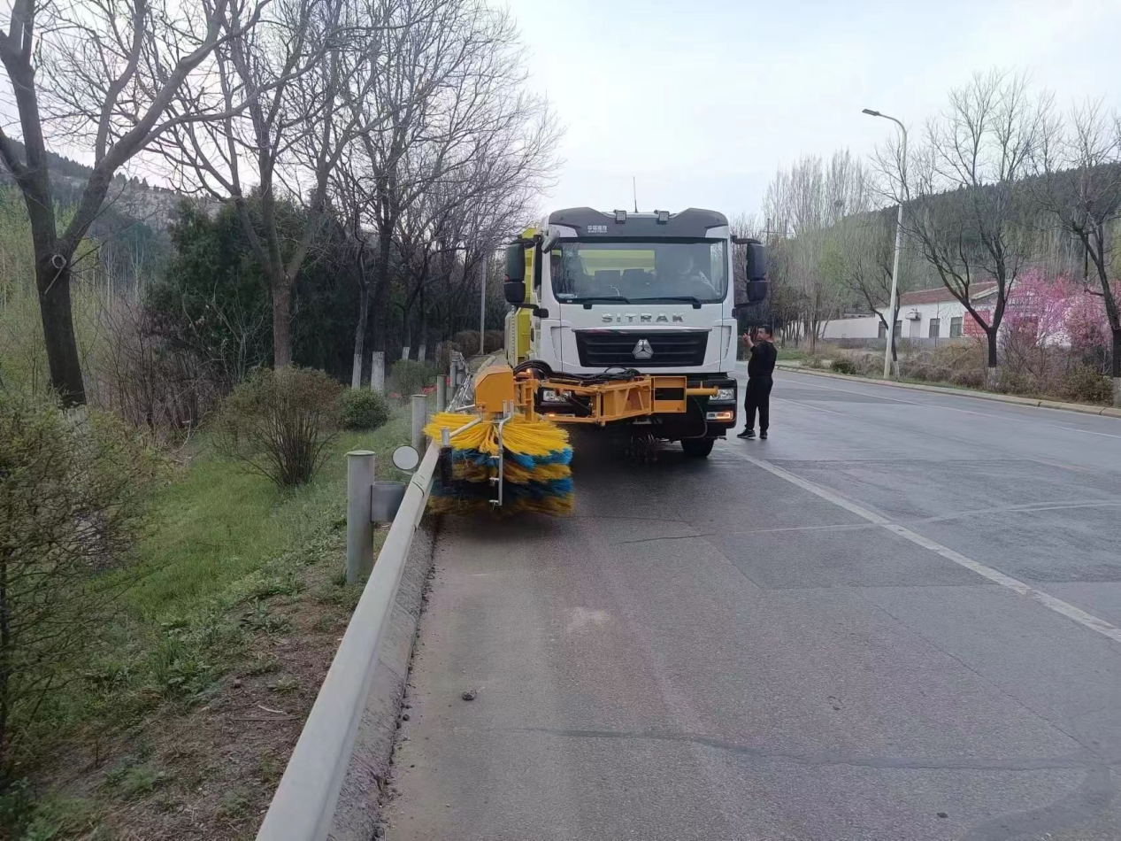 4月10日,魯商服務(wù)城市生活事業(yè)部引進的護欄清掃環(huán)衛(wèi)作業(yè)設(shè)備正式投入使用。