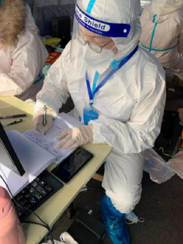 每逢集中核酸檢測的日子,蔣睿都會在清晨5點抵達現(xiàn)場開始準備工作,搭建帳篷、擺放隔離護欄、組裝電腦、疏通電路……嚴格確保設施、設備及時到位,正常運轉(zhuǎn)。核酸檢測工作開始后,他全程穿著防護服,佩戴N95口罩、丁腈手套、護目鏡、防護鞋套,為社區(qū)居民登記個人信息并發(fā)放核酸檢測條碼,每天服務數(shù)千名居民。核酸檢測結(jié)束后,他又不停歇地將剩余防疫醫(yī)療物資及其他設備運送到指定地點。一天志愿服務結(jié)束后,他早已是汗流浹背。