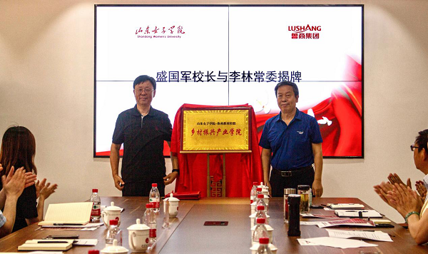 盛國軍、李林共同為“鄉村振興產業學院”揭牌,劉恩允與李學軍分別代表雙方簽署戰略合作協議。在隨后舉行的山東女子學院鄉村振興特色發展研討會上,雙方就如何推進鄉村振興特色發展及產業學院建設等主題進行深入交流。