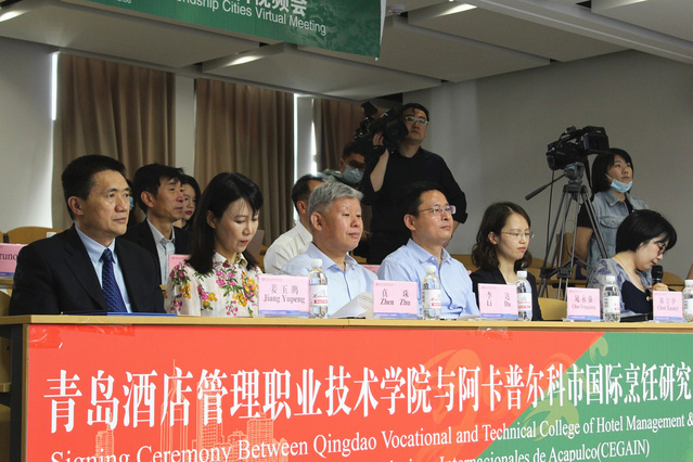 6月7日,青島酒店學(xué)院與墨西哥阿卡普爾科國際烹飪研究中心舉行簽約儀式暨傳統(tǒng)烹飪技藝交流展示活動,中國人民對外友好協(xié)會有關(guān)領(lǐng)導(dǎo),墨西哥駐華大使施雅德、阿卡普爾科市市長阿貝麗娜·洛佩斯,青島市人民政府外事辦公室黨組成員、副主任真珠,市教育局國際交流合作處處長晁永強,市外辦美大處處長陳宣伊,學(xué)校黨委書記李達、院長姜玉鵬,副書記韓西清參加活動。