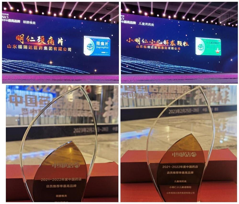 2月25日至28日,由中國藥店雜志社主辦的2022-2023中國藥店發(fā)展報告暨中國藥店價值榜發(fā)布會在青島舉行。福瑞達明星產(chǎn)品明仁®頸痛片、小明仁®小兒解感顆粒分別榮獲“頸腰椎病類”和“兒童用藥類”店員推薦率最高品牌。