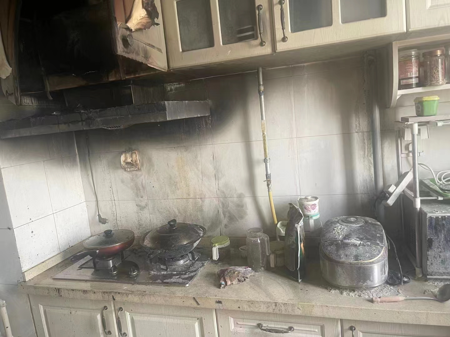 7月14日,王先生的母親出門未關(guān)爐灶,導(dǎo)致鍋內(nèi)油溫過高引發(fā)明火,形成火情。項目中控室值班人員通過監(jiān)控及煙感預(yù)警發(fā)現(xiàn)火情后立即啟動火災(zāi)應(yīng)急處理預(yù)案,通知當(dāng)班工作人員急速趕赴現(xiàn)場。項目工作人員到達現(xiàn)場后分頭開展業(yè)主疏散、現(xiàn)場撲救及衛(wèi)生清理工作,在消防人員到達前成功消滅了火情。