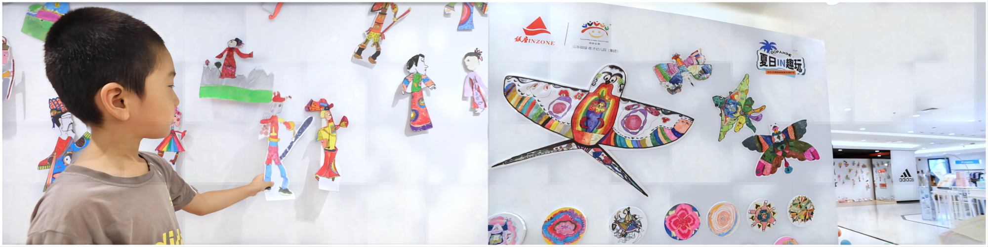 7月21日,一場以“IN像創藝場--童趣一夏”為主題的兒童創意美術展在銀座濟南商城店亮相。展覽以傳統文化為載體,用剪紙、紙鳶、水墨、皮影藝術展現童真、童趣,用畫筆講述愛的故事,成為銀座商城新的打卡點。同時,門店為小朋友量身打造“小小營業員”“一日店長”等活動,通過戴好工牌、參與晨會、與顧客溝通等環節進行沉浸式職業體驗,讓孩子們了解商場員工的工作日常,增強社會責任感。創意畫作搭配有趣活動,為消費者送上“美味的”藝術便餐。