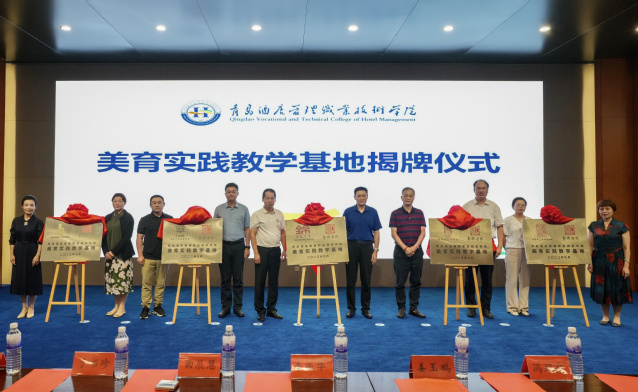 9月19日下午,青島酒店學(xué)院舉行美育實(shí)踐教學(xué)基地揭牌儀式,青島市文聯(lián)主席王紹波,山東省民俗學(xué)會(huì)常務(wù)理事朱振華,青島市文旅局非遺處處長馮耀東,青島酒店學(xué)院校長姜玉鵬出席。