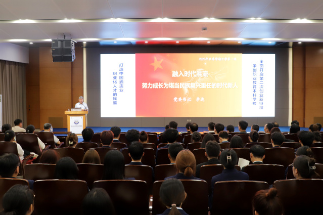 9月20日,青島酒店學院黨委書記李達走進課堂,以《融入時代洪流 努力成長為堪當民族復興重任的時代新人》為題,為全校學生講授“開學第一課”,副校長宮恩龍主持。