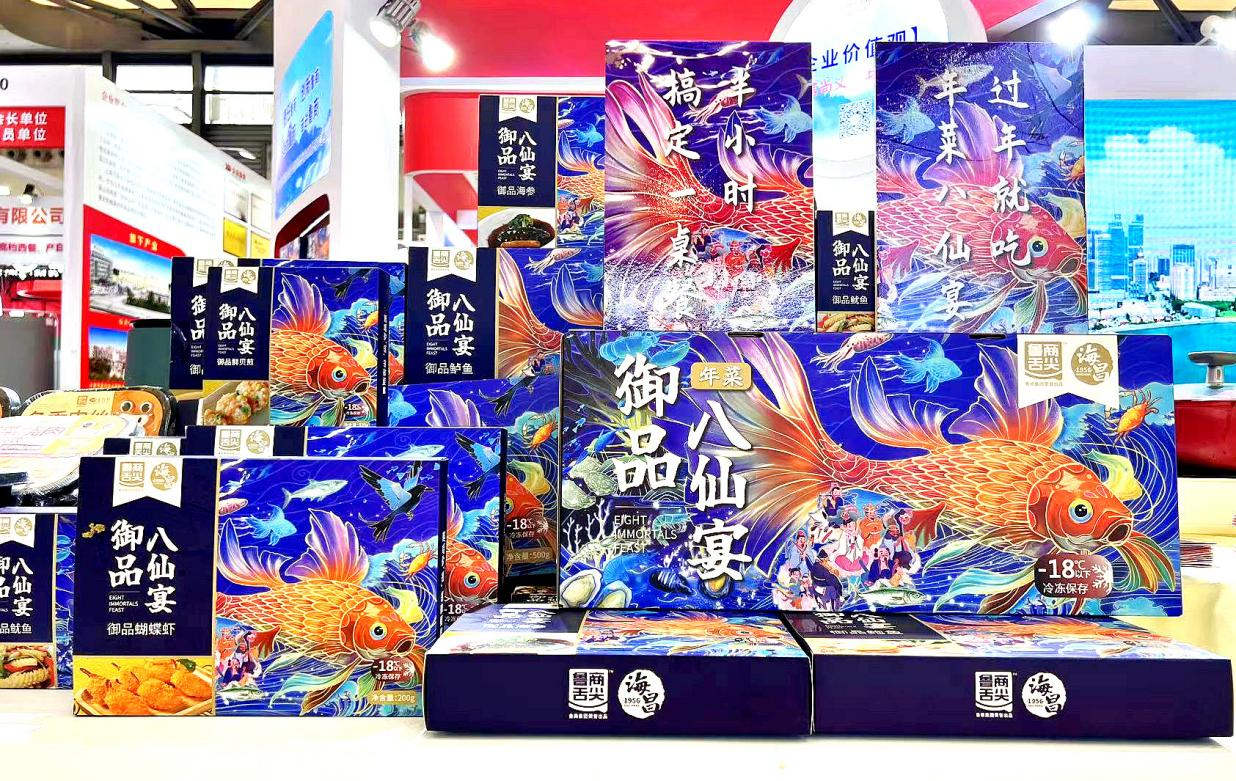 “御品八仙宴”禮盒用手繪的方式融入了錦鯉國潮元素,放大文化屬性,通過美食與文化的結(jié)合營造節(jié)日氛圍。八款菜品更是精烹細(xì)選,由魯商舌尖與山東城市服務(wù)職院中餐學(xué)院聯(lián)合研發(fā),在菜品搭配和口味上進(jìn)行二次創(chuàng)新,讓顧客半小時(shí)搞定一桌年夜飯。