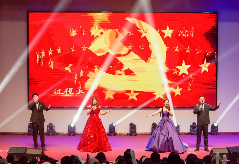 學(xué)校黨委委員、紀(jì)委書記周立峰,校長(zhǎng)助理王帥出席,各部門、各學(xué)院、各單位負(fù)責(zé)人及師生代表在現(xiàn)場(chǎng)共同觀看。晚會(huì)同步進(jìn)行線上直播,觀看及點(diǎn)贊互動(dòng)10萬(wàn)余次。