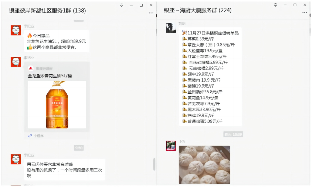 去年來,門店為方便周邊消費者生活,助力一刻鐘便民生活圈建設(shè),與隆悅花園小區(qū)、百花公園社區(qū)達成長期合作關(guān)系,每周三定期開展進社區(qū)活動,把民生商品、銀座爆品帶進社區(qū),與居民加強互動,得到大家一致好評。此外,洪樓店還建立了10個微信便民社區(qū)服務(wù)群,構(gòu)建私域社群,以公域作承接,用互動形式鏈接街道、商業(yè)和消費者,拉近彼此距離,讓居民更直觀感受到一刻鐘便民生活圈的服務(wù)價值。