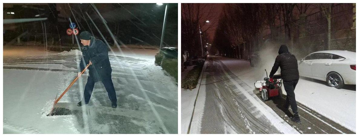 濟南城市公司各項目冒著刺骨寒風投入到清雪工作中。工作人員相互配合,通過“機械+人工”作業的方式,對項目主路、出入口及單元門等公共區域進行徹底清掃,全力以赴保障道路暢通。
