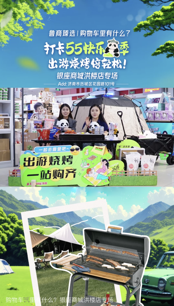 近日,魯商科技旗下魯商臻選直播團(tuán)隊(duì)聯(lián)合銀座集團(tuán)在銀座濟(jì)南洪樓店開(kāi)展“打卡55快樂(lè)季,出游燒烤倍輕松!”主題直播活動(dòng),觀看人數(shù)創(chuàng)歷史新高。