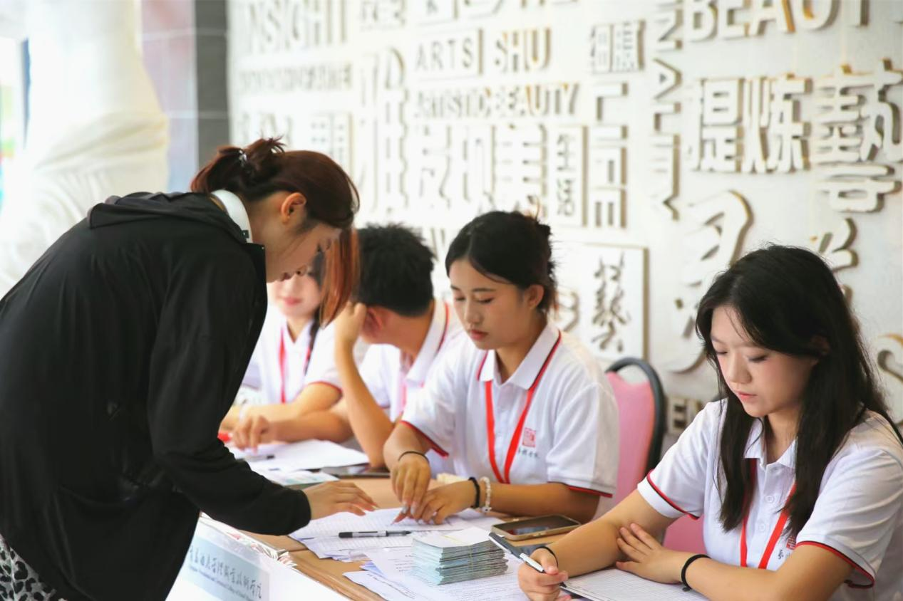 “魅力酒管”專屬打卡墻、“幸福雅集”驛站、味味道來“新質烹飪青年”大闖關、“匠心工程”姓名墻、工商“速運”、心想“柿”成心愿墻、“E”見傾“信”幸運大轉盤、“藝+”沉浸式打卡點……這些獨具特色的迎新活動,引得眾多新生和家長駐足參與、拍照留念,有助于新生更快地了解專業文化、融入校園生活。