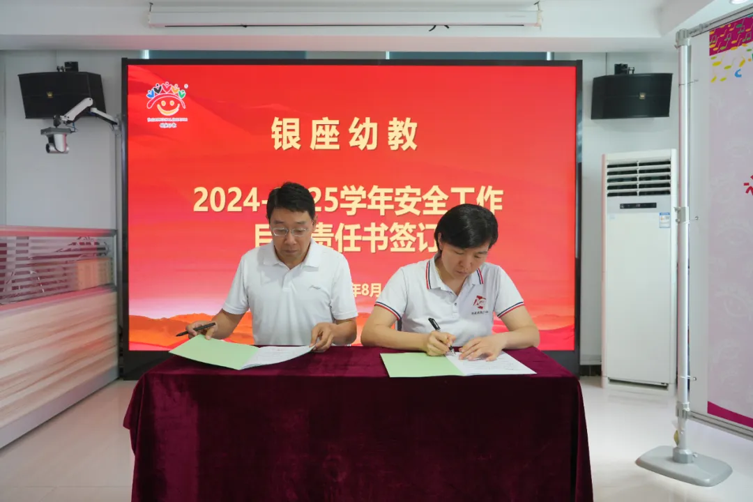 隨后,銀座幼教舉行新學(xué)年各崗位安全目標(biāo)責(zé)任書簽訂儀式。