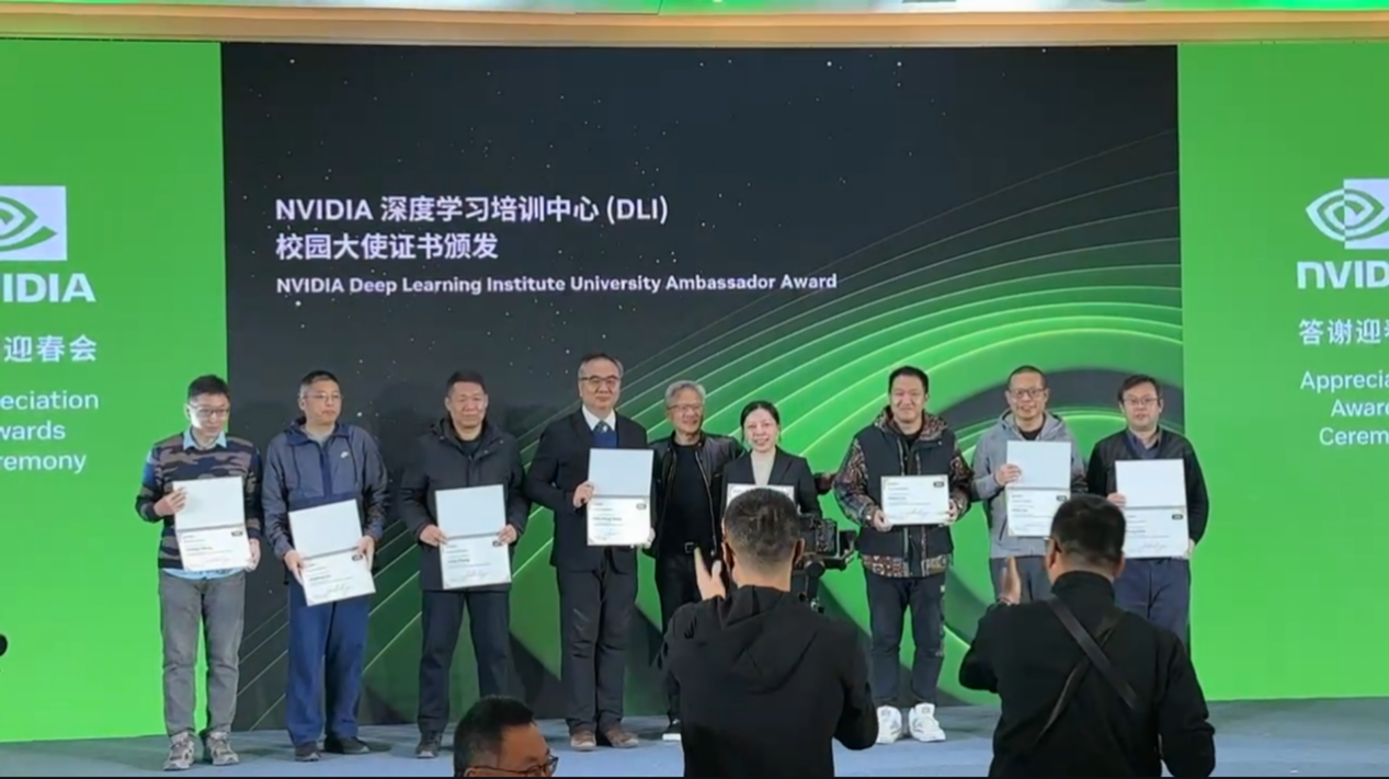 1月19日,在北京舉辦的英偉達年度總結會上,公司創始人兼首席執行官黃仁勛為合作院校白金講師頒發校園大使證書。全國本專科學校共8位老師獲此殊榮,山東商職學院云計算技術與應用產業學院教師張炯和周倩獲得該證書。
