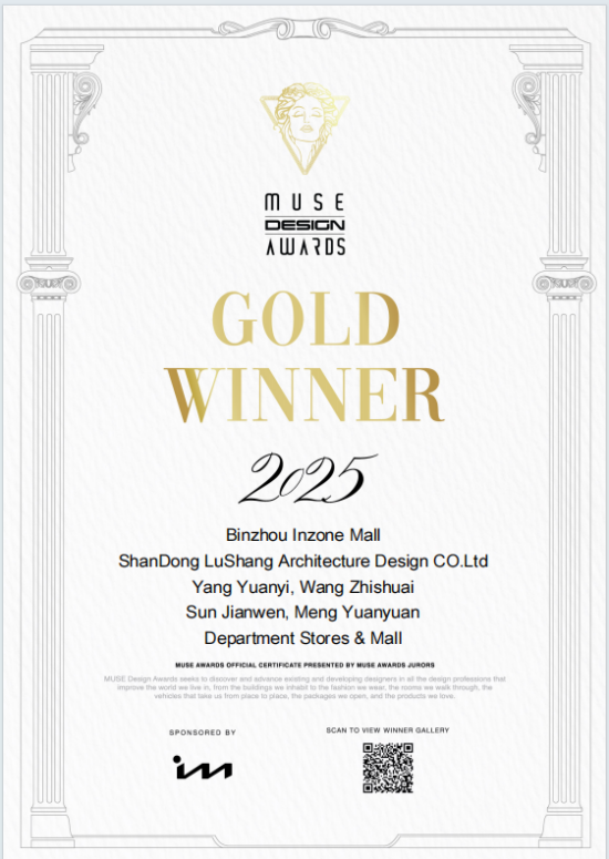 近日,全球建筑與設計領域極富影響力的獎項美國繆斯設計獎(MUSE Design Awards)獲獎名單正式揭曉,城發設計憑借濱州銀座茂項目的獨特創意理念與革新突破,一舉奪得室內設計-零售、商店、百貨商店及購物中心類別金獎。