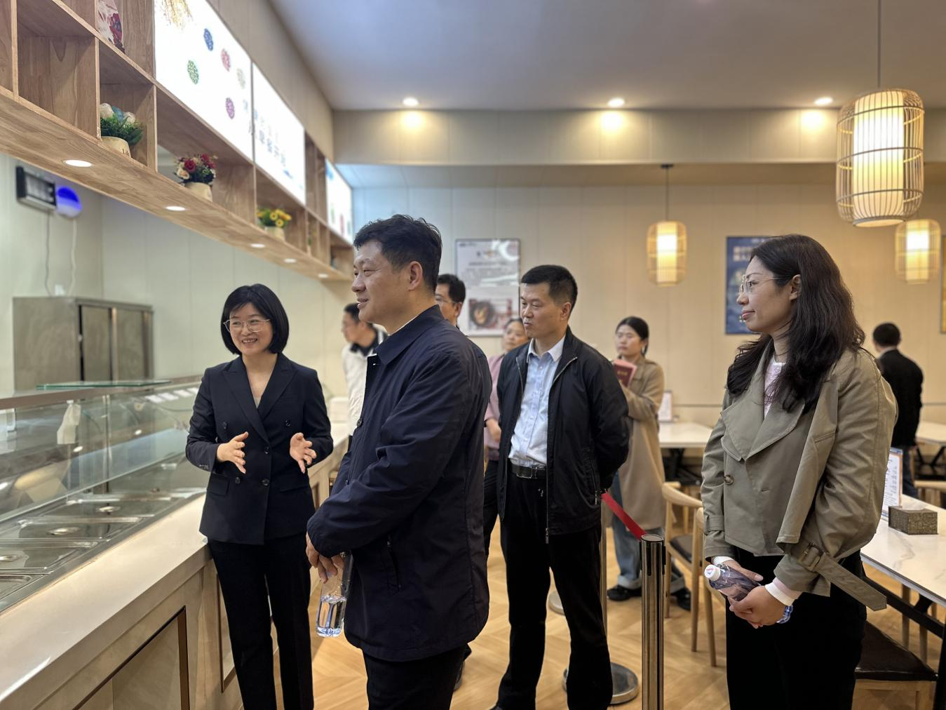 調(diào)研期間,劉乃兵一行先后察看了銀座花園社區(qū)營養(yǎng)健康宣傳展板、知識角、食堂、健康消費專區(qū)以及衛(wèi)生服務(wù)中心,詳細了解社區(qū)在分齡健康科普、老年營養(yǎng)干預(yù)、健康飲食供給及個性化服務(wù)指導(dǎo)等方面的具體做法與成效,對社區(qū)實現(xiàn)“宣傳—教育—餐飲—消費”一體化服務(wù)閉環(huán)表示肯定。