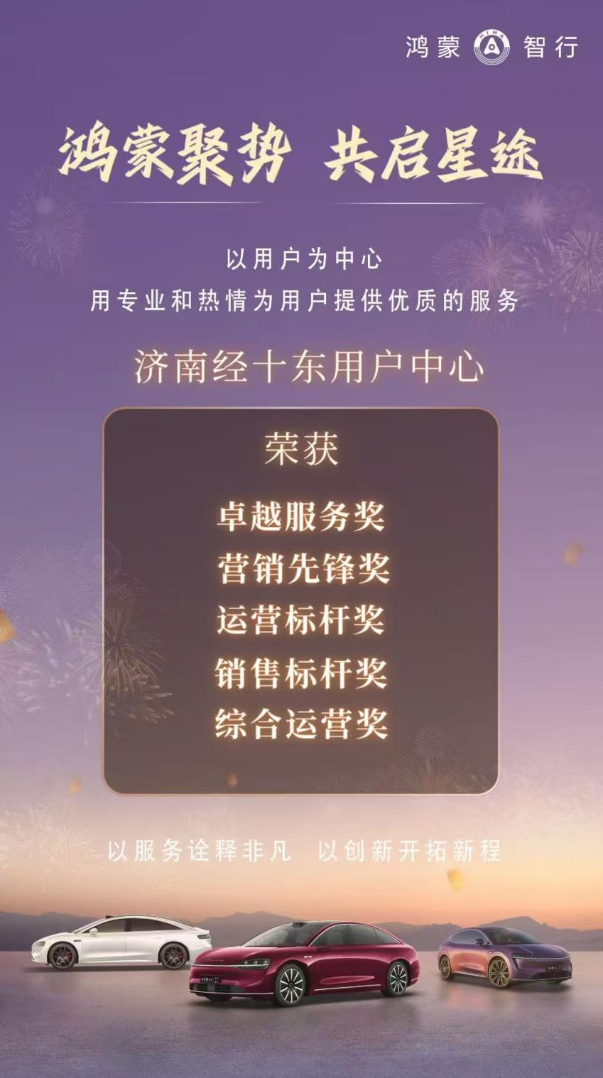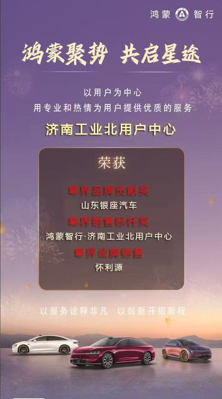 這份滿載榮譽的“期中答卷”,是銀座汽車鴻蒙智行濟南雙店銳意進取的見證,也是邁向更高峰的起點。未來,銀座汽車鴻蒙智行將以精準運營為引擎,以用戶需求為導向,在創(chuàng)新服務的賽道上合力突破,共繪銀座汽車新能源賽道輝煌篇章。