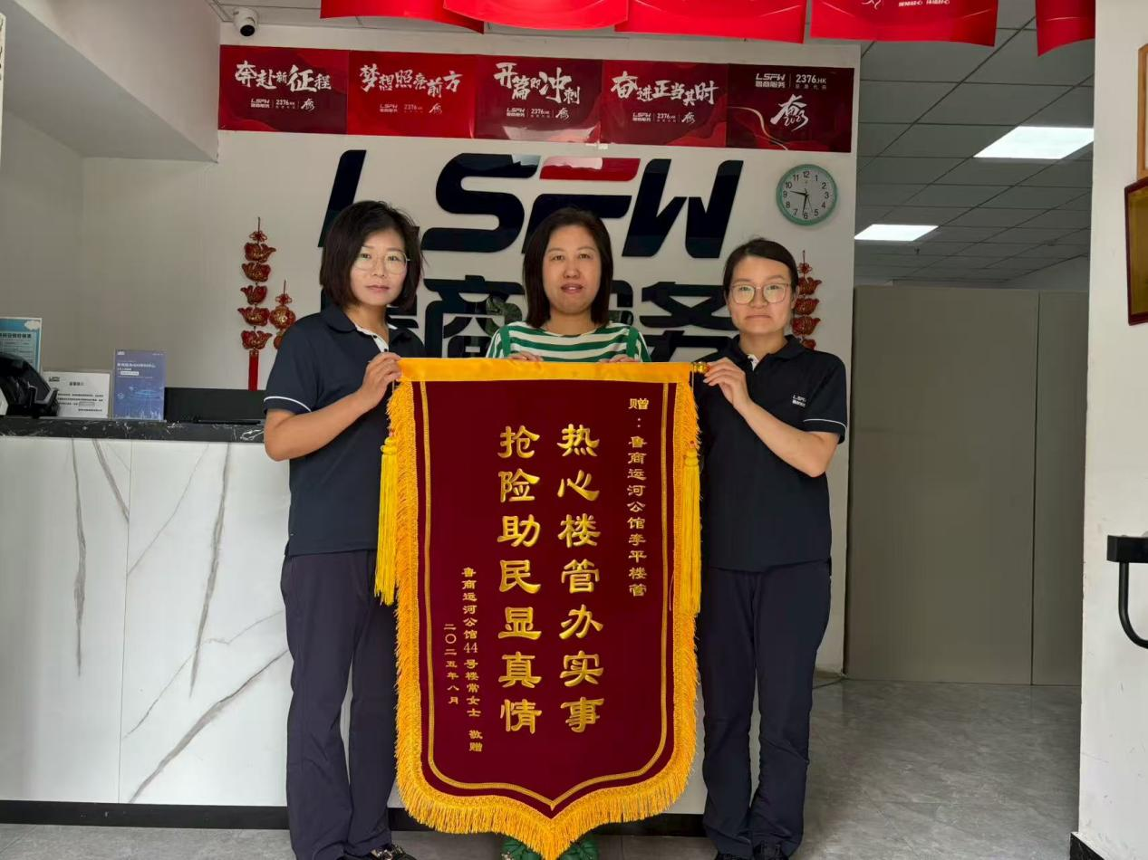 8月27日,濟寧運河公館項目物業(yè)服務中心收到業(yè)主專程送來的一面錦旗,紅彤彤的絨面上,“熱心樓管辦實事,搶險助民顯真情”的金黃大字格外醒目,字里行間滿載著對物業(yè)人專業(yè)應對與暖心服務的誠摯謝意。
