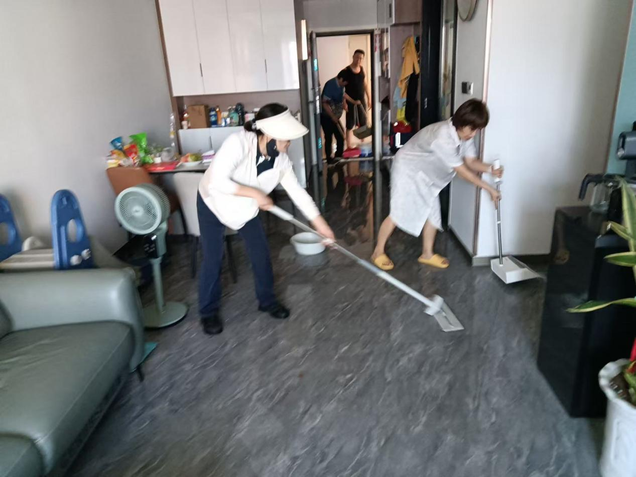 待業(yè)主趕回,打開家門看到的是一片狼藉的淹水場景,物業(yè)團隊在征得業(yè)主同意后迅速進入,確定漏水原因為廚房角閥因長期使用老化爆裂。與此同時,其他工作人員利用拖把、水桶等工具全力清理室內積水,盡力縮短家具、地板的浸泡時間。經過一個多小時的努力,屋內積水被徹底清除,工作人員還貼心給予了后續(xù)處理建議。物業(yè)團隊的迅速響應、高效處置和盡責態(tài)度,讓業(yè)主深受感動,特地制作錦旗以表感激。