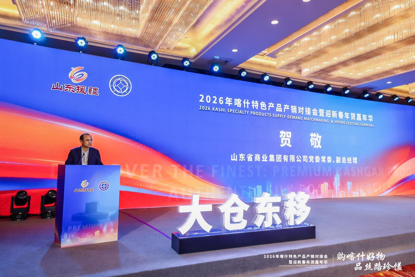 1月27日,2026喀什特色產品產銷對接會暨迎新春年貨嘉年華在濟南正式啟動。活動由山東省發展改革委、山東省國資委、山東省對口支援新疆工作指揮部指導,喀什地區商務局、中國物流與采購聯合會主辦,魯商集團承辦。