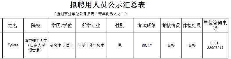 山東省藥學(xué)科學(xué)院擬聘用人員公示