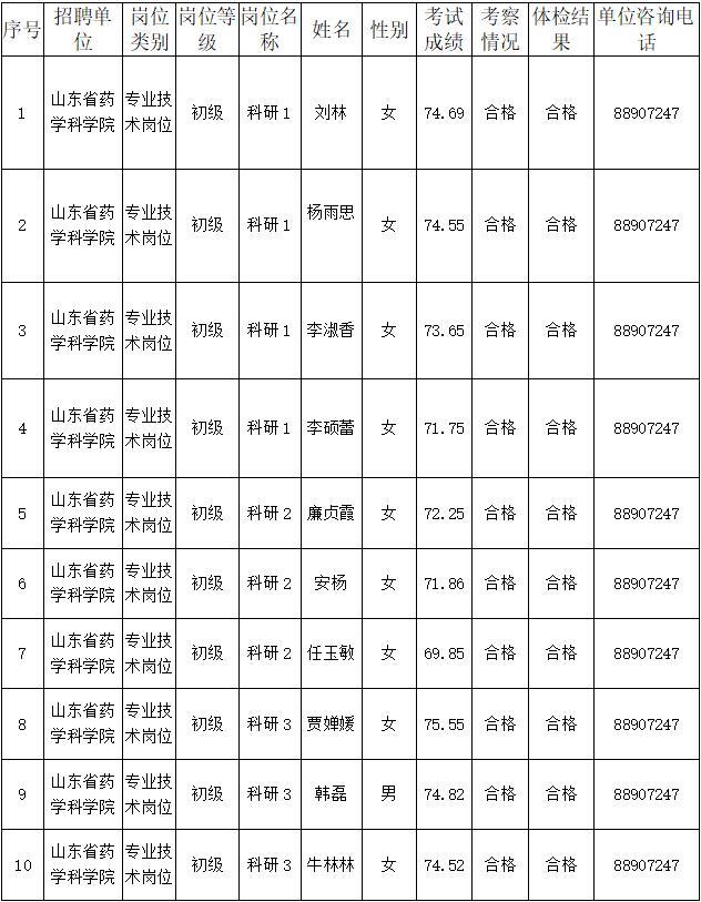 據中共山東省委組織部、省人社廳《關于印發2023年度省屬事業單位公開招聘工作實施方案的通知》(魯人社發〔2022〕23號)等相關規定,山東省藥學科學院組織完成了公開招聘考試、考察、體檢等工作,現對擬聘用人員進行公示,公示期為7個工作日,自2023年7月11日至2023年7月19日(不含節假日)。公示期間,如對公示人選有異議,請及時向山東省商業集團有限公司反映。