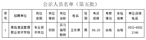 根據省屬事業單位公開招聘有關政策規定,按照崗位招聘計劃,青島酒店管理職業技術學院組織完成了公開招聘考試、考察、體檢等工作,現對該單位第五批擬聘用人員進行公示。公示期為7個工作日,自2024年7月17日至2024年7月25日(不含節假日)。公示期間,如對公示人選有異議,請向山東省商業集團有限公司反映。反映問題要實事求是,并告知真實姓名及聯系方式。