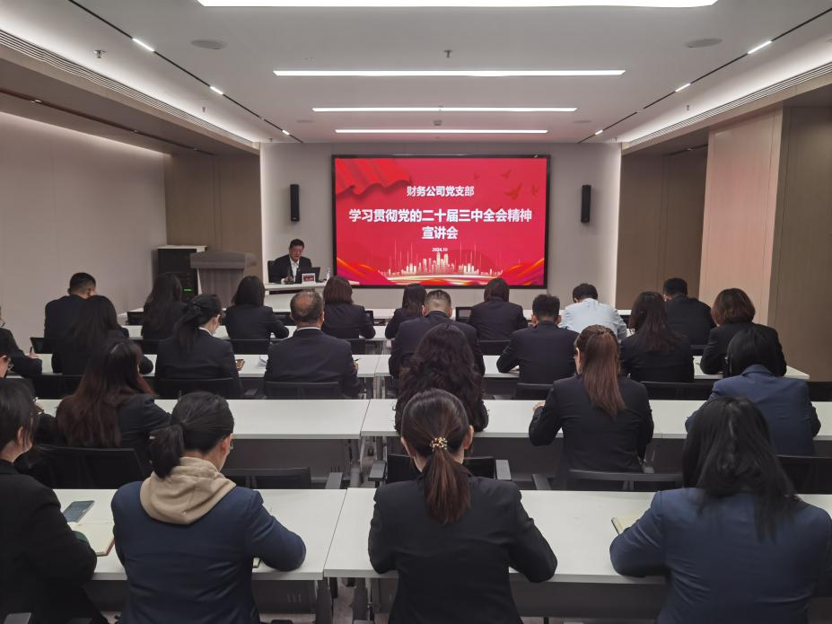為深入學習貫徹黨的二十屆三中全會精神,引導全體黨員干部解放思想、奮發進取,全面推動各項任務落地落實,10月21日,財務公司舉辦學習貫徹黨的二十屆三中全會精神宣講會,黨支部書記徐峰作專題宣講。